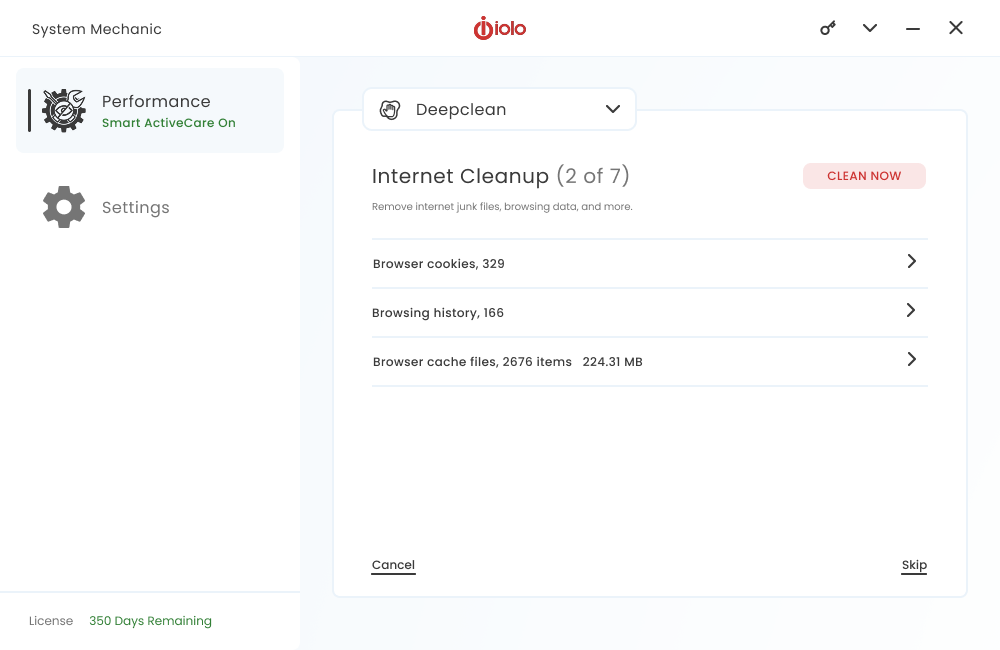 - Deeper Cleanup – Removes more internet junk files to free up valuable space, providing deeper repairs.